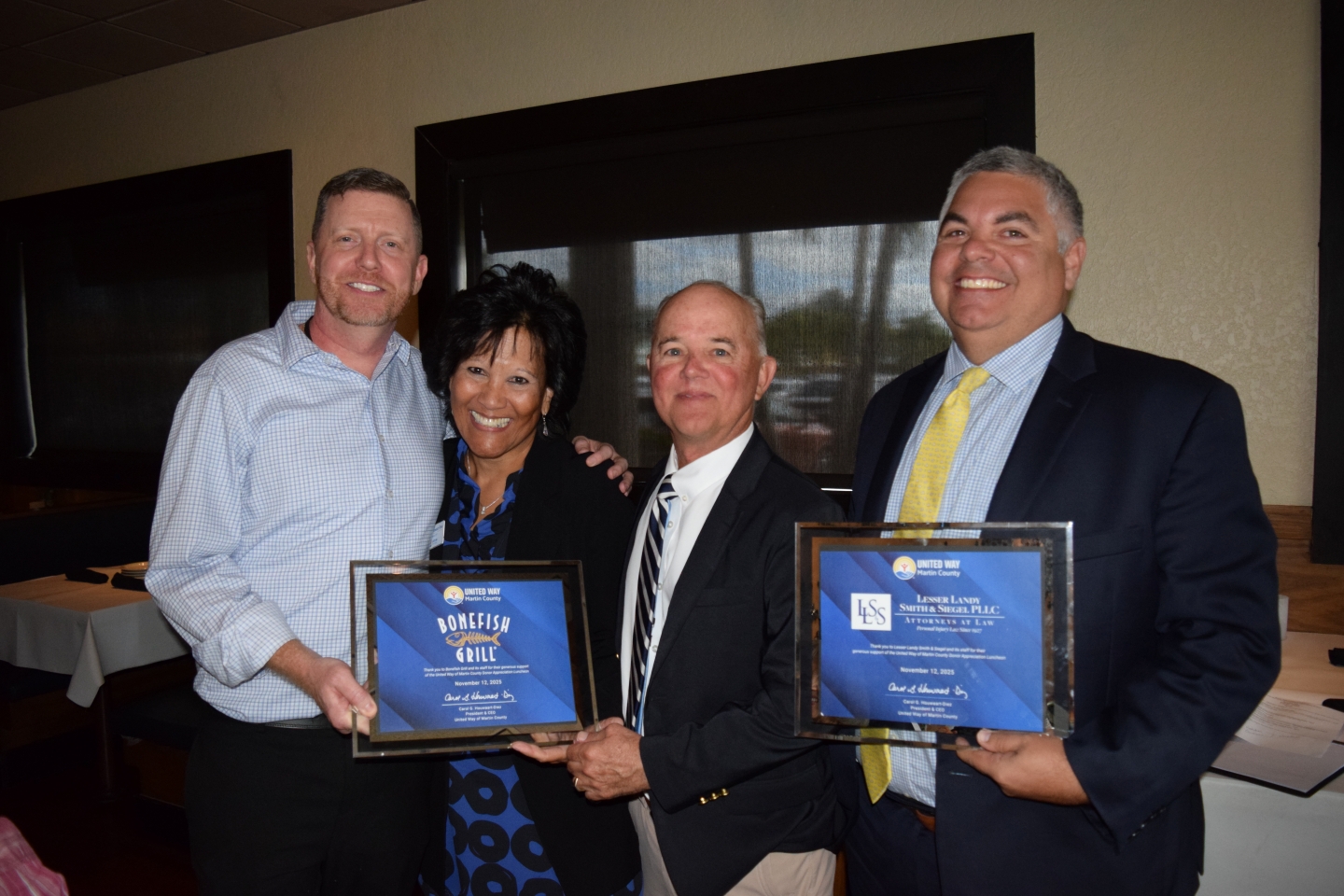 Attendees enjoyed a delicious meal prepared by Bonefish Grill, whose staff volunteered their time and whose management generously donated the cost of the luncheon back to United Way. The gathering provided a chance for donors to connect, share stories of impact, and celebrate the collective difference their support makes across Martin County.